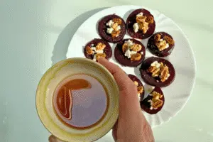 Puikiai tiks ir džiovinti abrikosai, datulės ar net šiek tiek karamelizuotų svogūnų – saldumo balansui išlaikyti. ✔ Norite veganiškos versijos?