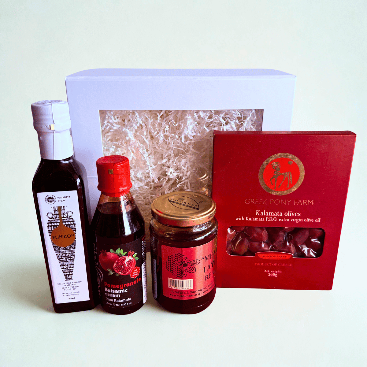 „Graikiška Šiluma“ – tai rinkinys, skirtas tiems, kurie vertina natūralius skonius, estetiką ir kokybišką maistą. Keturi klasikiniai Graikijos produktai dera tarpusavyje ir leidžia lengvai sukurti jaukią vaišių akimirką – nuo pusryčių iki vakarienės ar užkandžių stalo.