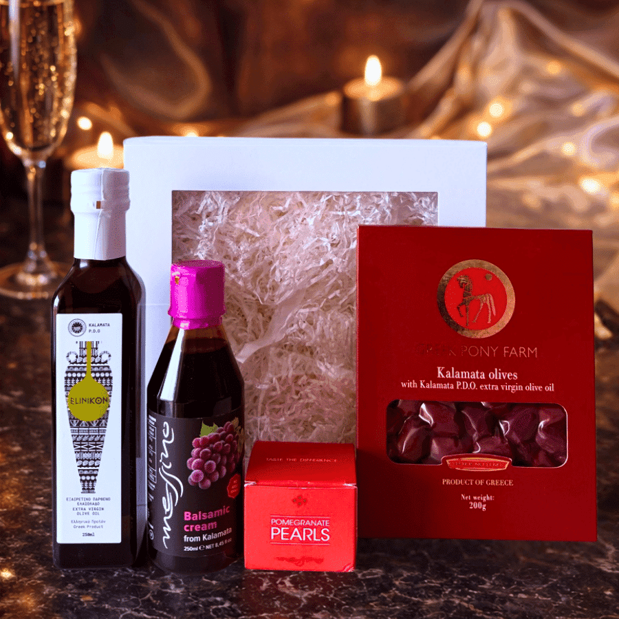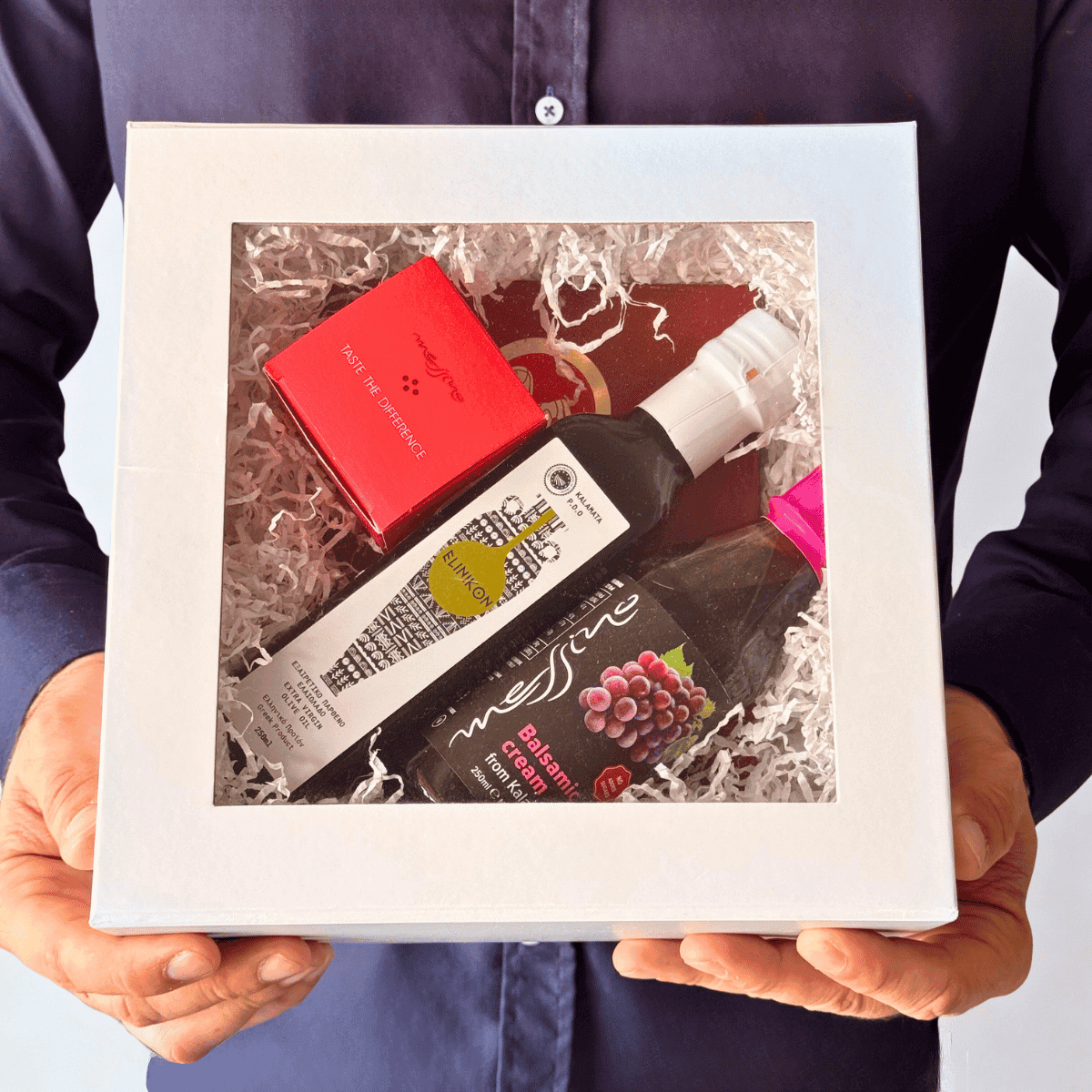 Tai klasikinis Graikijos skonių rinkinys vienoje elegantiškoje dovanų dėžutėje. Ši dėžutė sukurta tiems, kurie mėgsta gardžias, subalansuotas salotas, vertina kokybiškus ingredientus ir nori pasisemti įkvėpimo iš Viduržemio virtuvės.