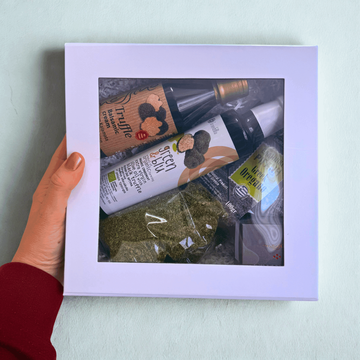 Elegantiška dovanų dėžutė talpina 4 tarpusavyje idealiai derančius produktus, leidžiančius namuose sukurti restorano lygio patirtį be sudėtingų receptų.