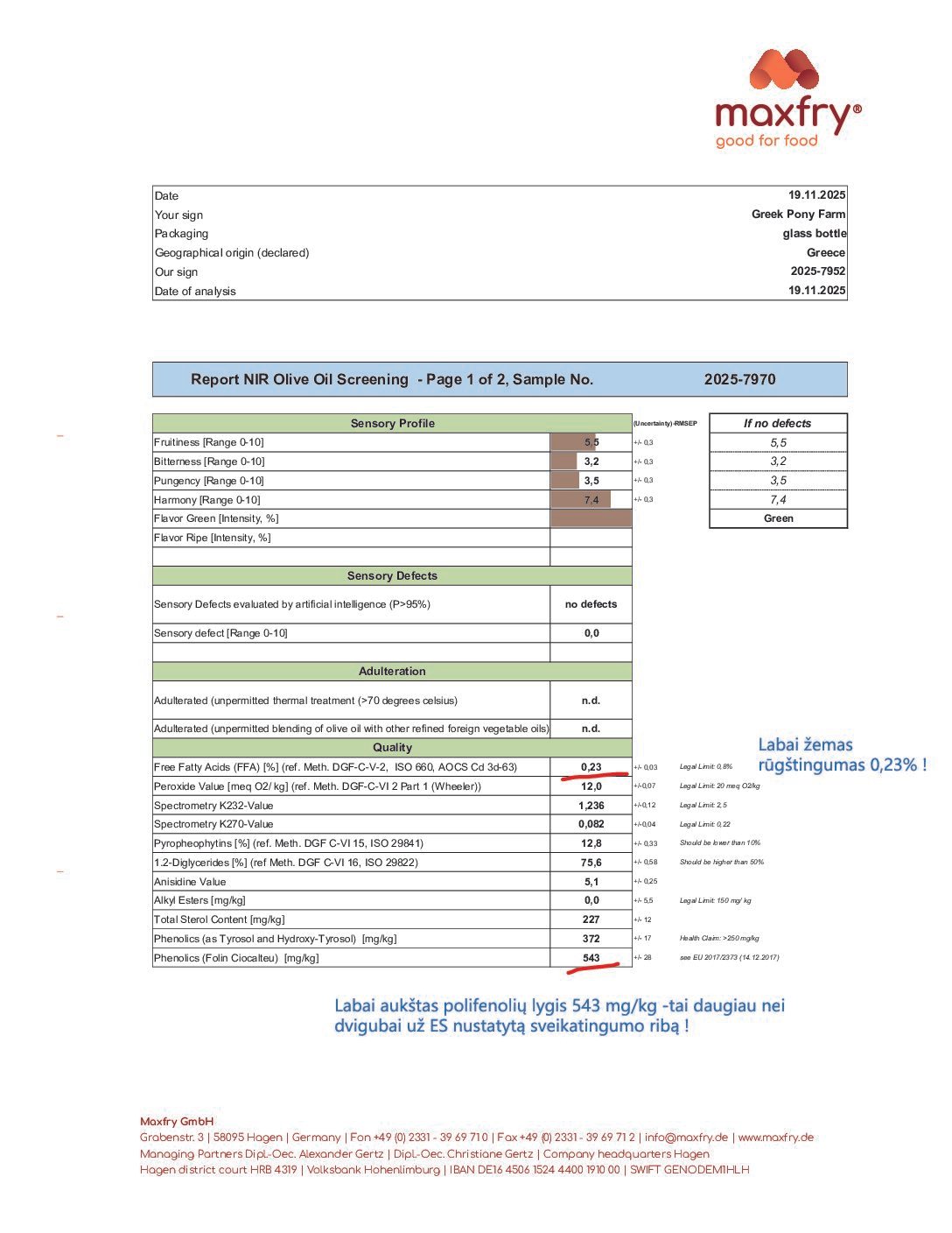 Gamintojas Greek Pony Farm („Nikolakopoulos Bros“) – keturių kartų šeimos ūkis, garsėjantis ekologišku ūkininkavimu.