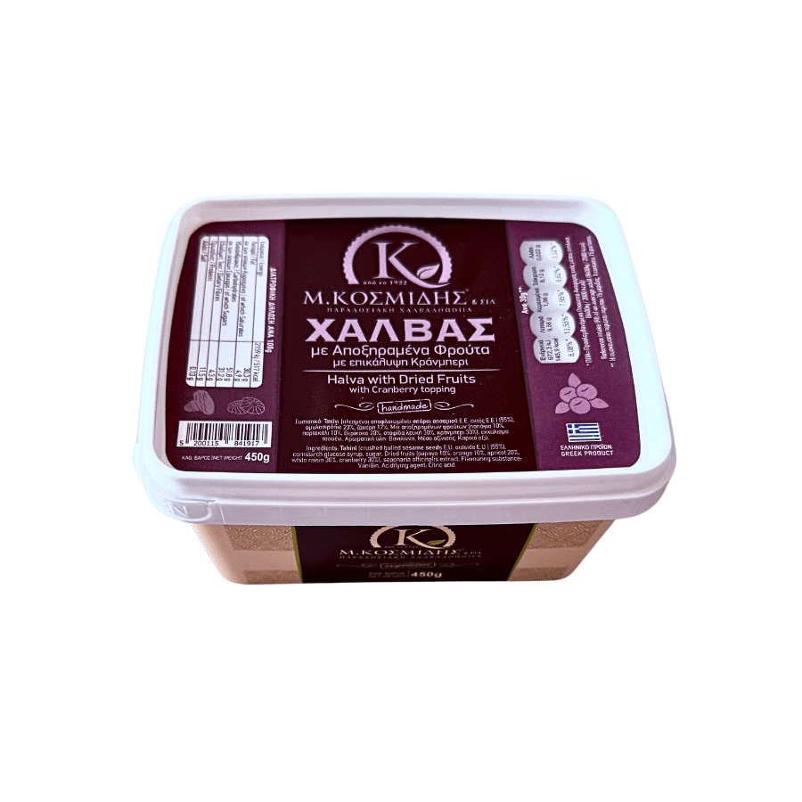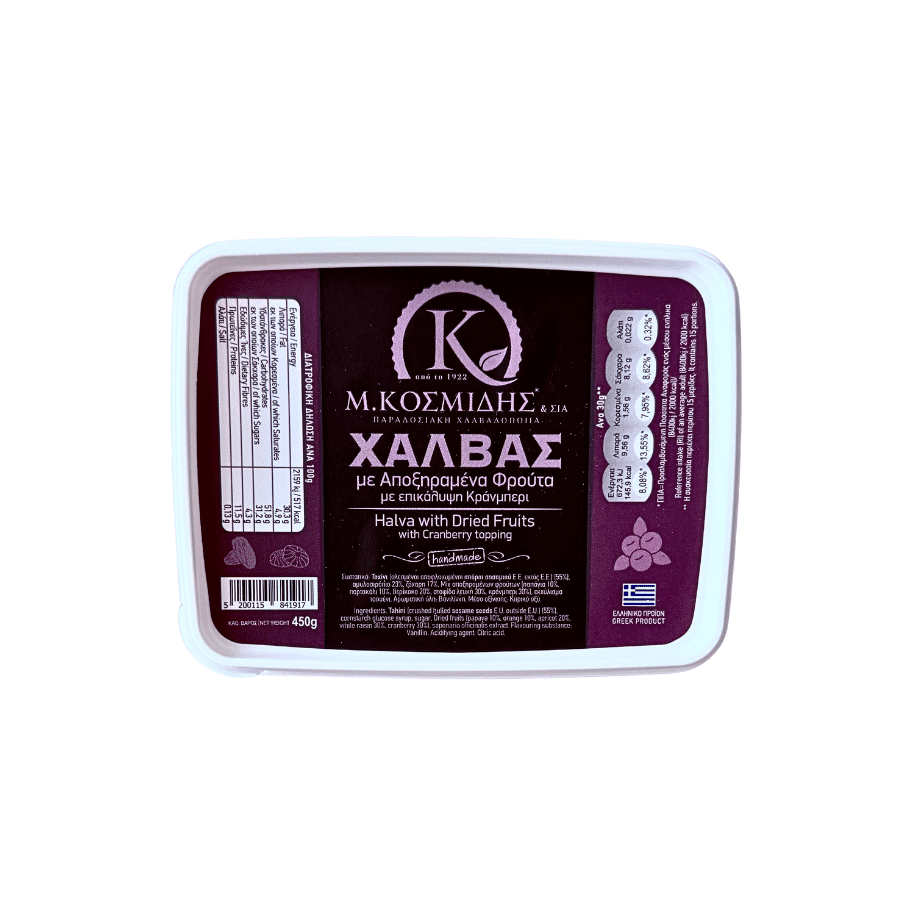 🍇 Sezamų chalva su džiovintais vaisiais ir spanguolių užpilu 450 g –