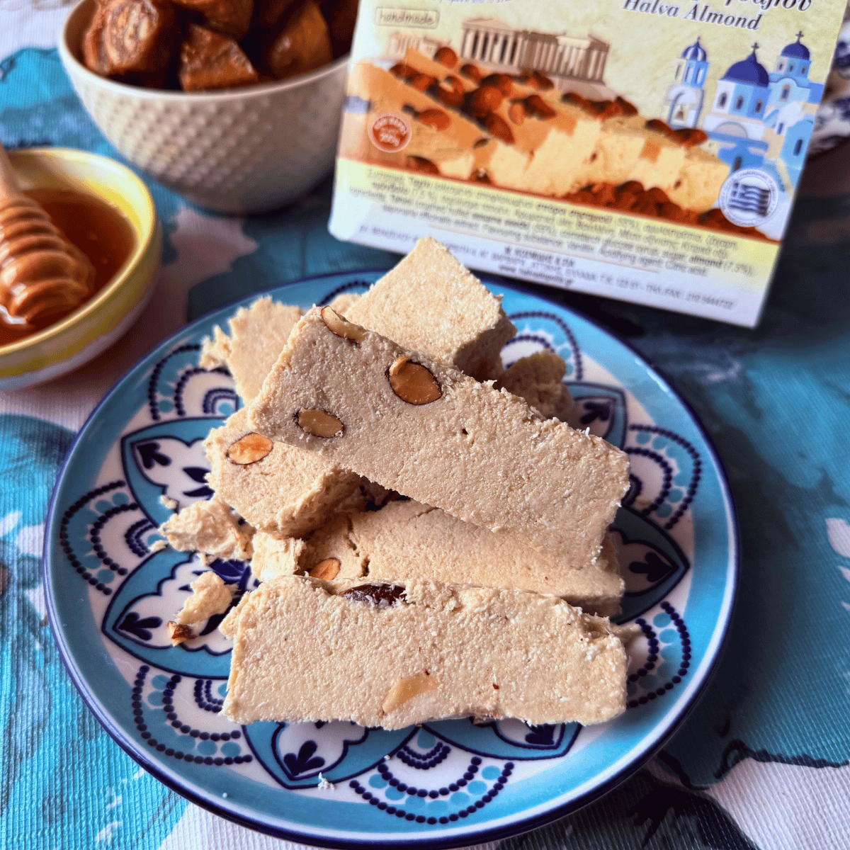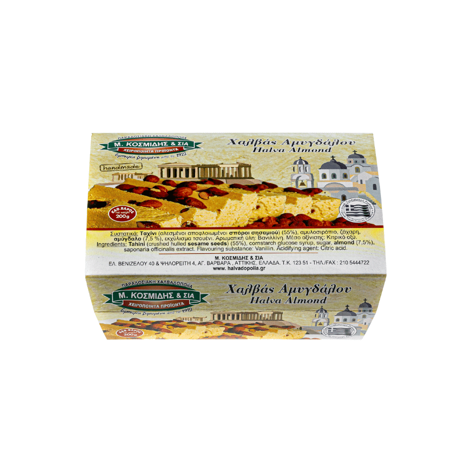Sezamų chalva su migdolais 200 g – rankų darbo graikiškas desertas, kuriame
